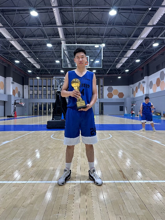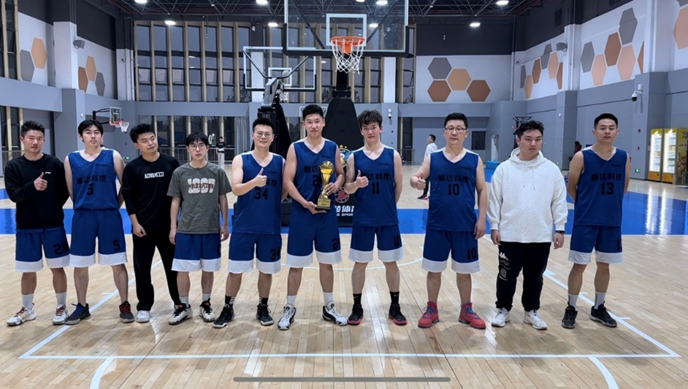 本屆籃球賽MVP,“通航隊(duì)”王澤仁與隊(duì)友合影(場(chǎng)均22.25分)